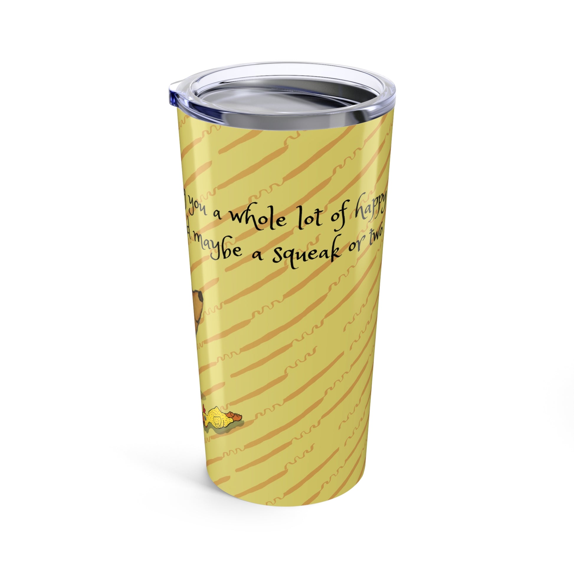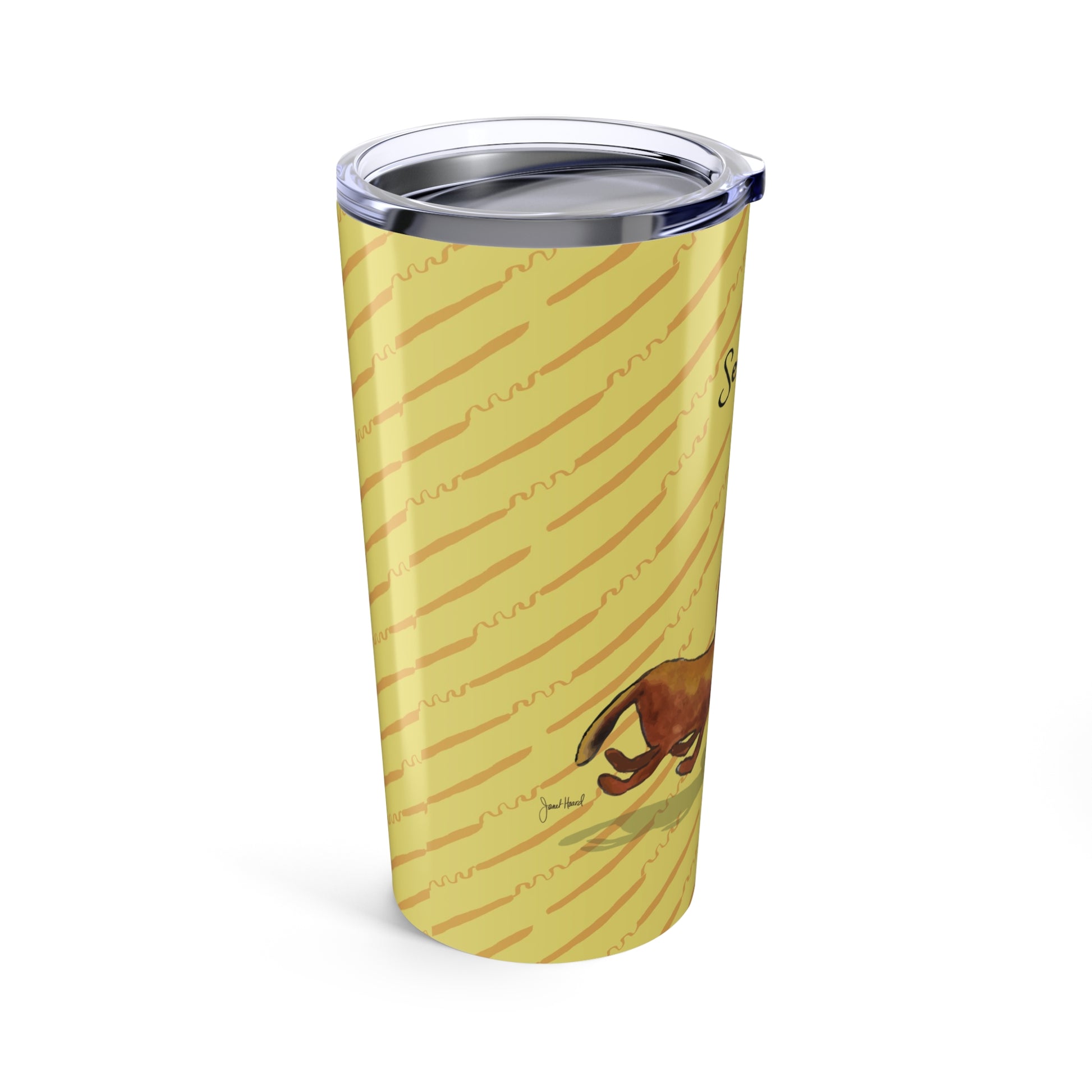 A cheerful dog tumbler celebrating loyal companions and everyday moments. This stainless steel cup features original artwork and keeps drinks hot or cold wherever you go.